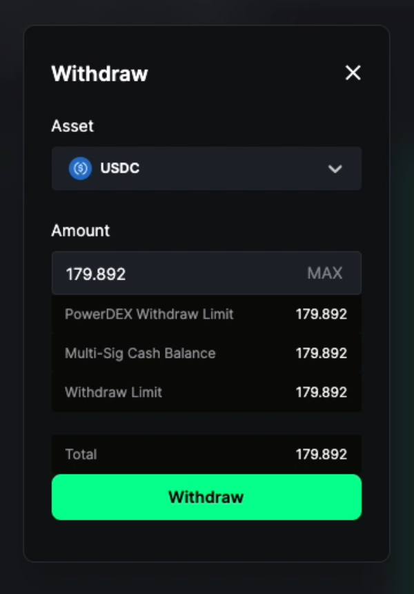 With Polaris, you can easily withdraw funds to your main wallet. Before withdrawing, make sure to [settle the balance](https://support.power.trade/polaris/using-powerdex/settling-your-account-balance) of your account.